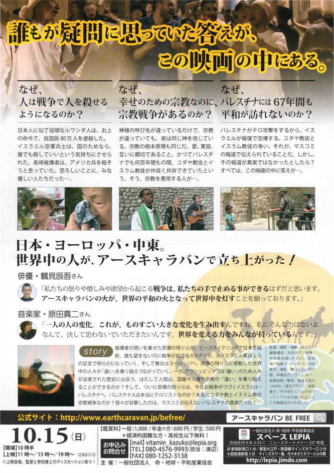 パレスチナ/イスラエル和平への映画「Be FREE!」上映+鈴木聡監督トーク
